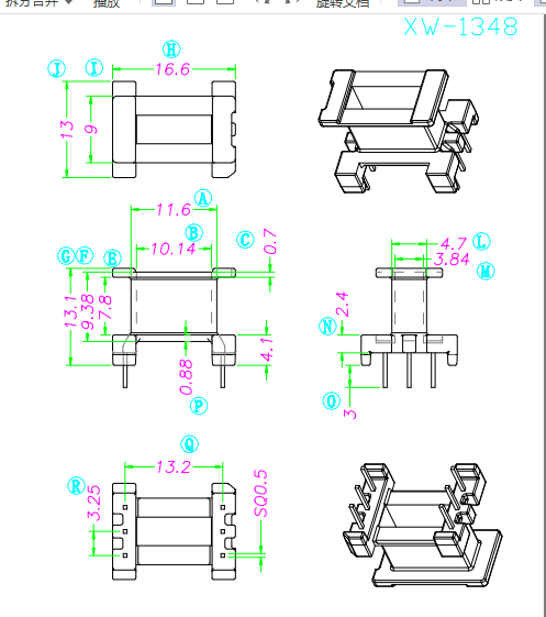 名称:XW-1348 EE13 3+3 高频电木变压器骨架